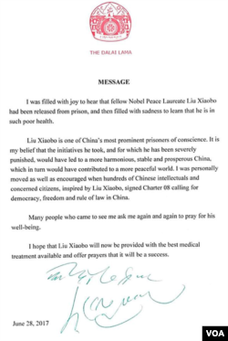 我希望刘晓波能够获得当今最佳的医疗服务,并祈愿他能够成功地战胜病魔。