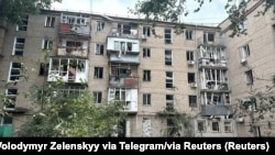 乌克兰尼古拉耶夫市一栋居民楼遭到俄罗斯的导弹攻击。(2024年7月19日)